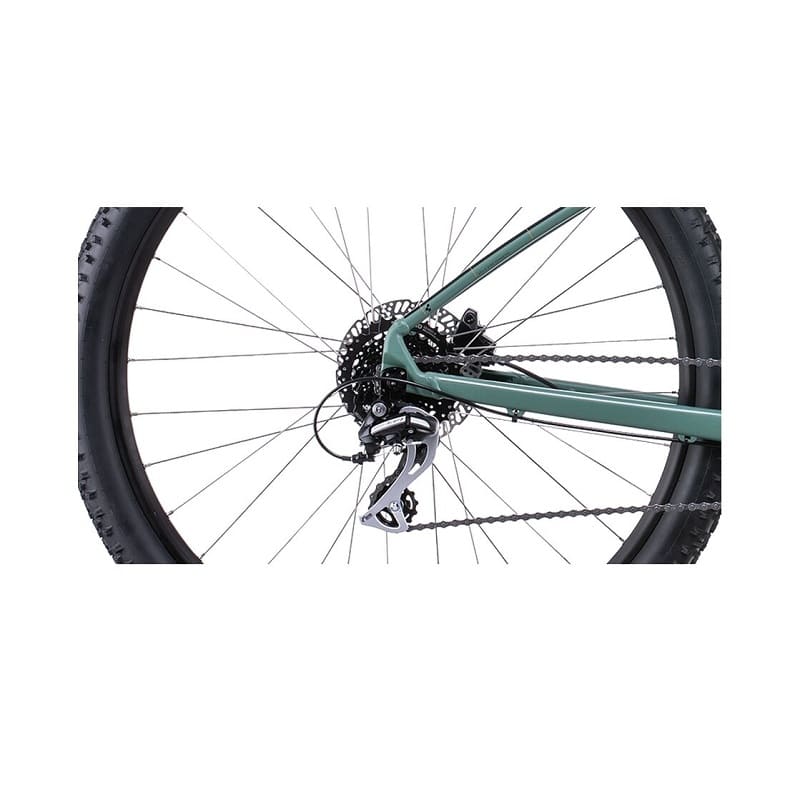 Dank der breiten Übersetzungsbandbreite mit einer 11-34 Zähne Kassette und einem 36/22 Zähne Kettenblatt ist das Bike flexibel genug für unterschiedliche Geländetypen – von flachen Feldwegen bis zu anspruchsvollen Anstiegen.