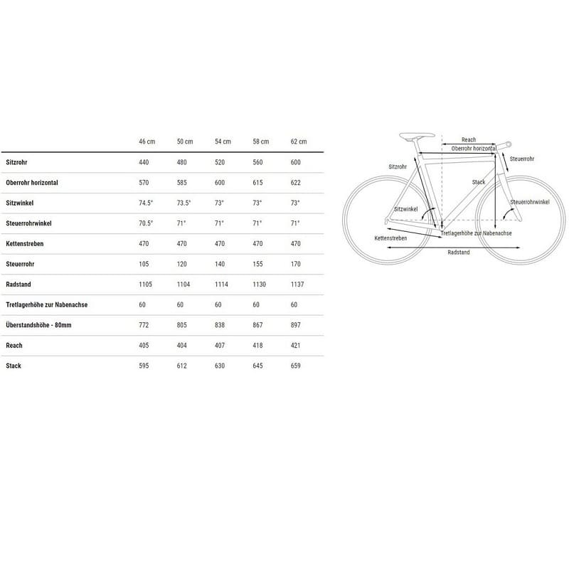 | Größe | 46 CM, 50 CM, 54 CM, 58 CM, 62 CM |