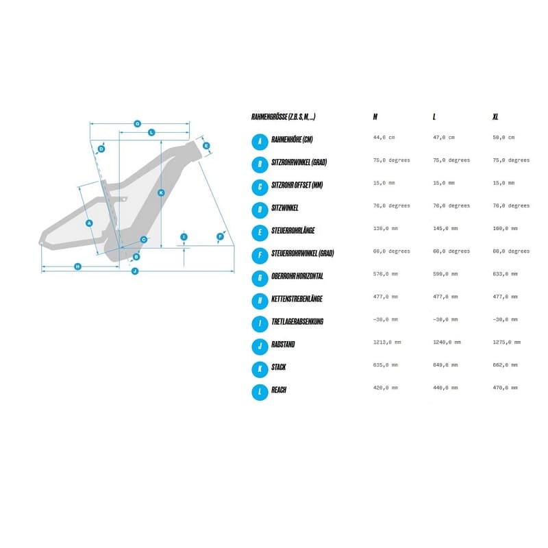 | Sitzrohrwinkel (deg) | 76 | 76 | 76 |